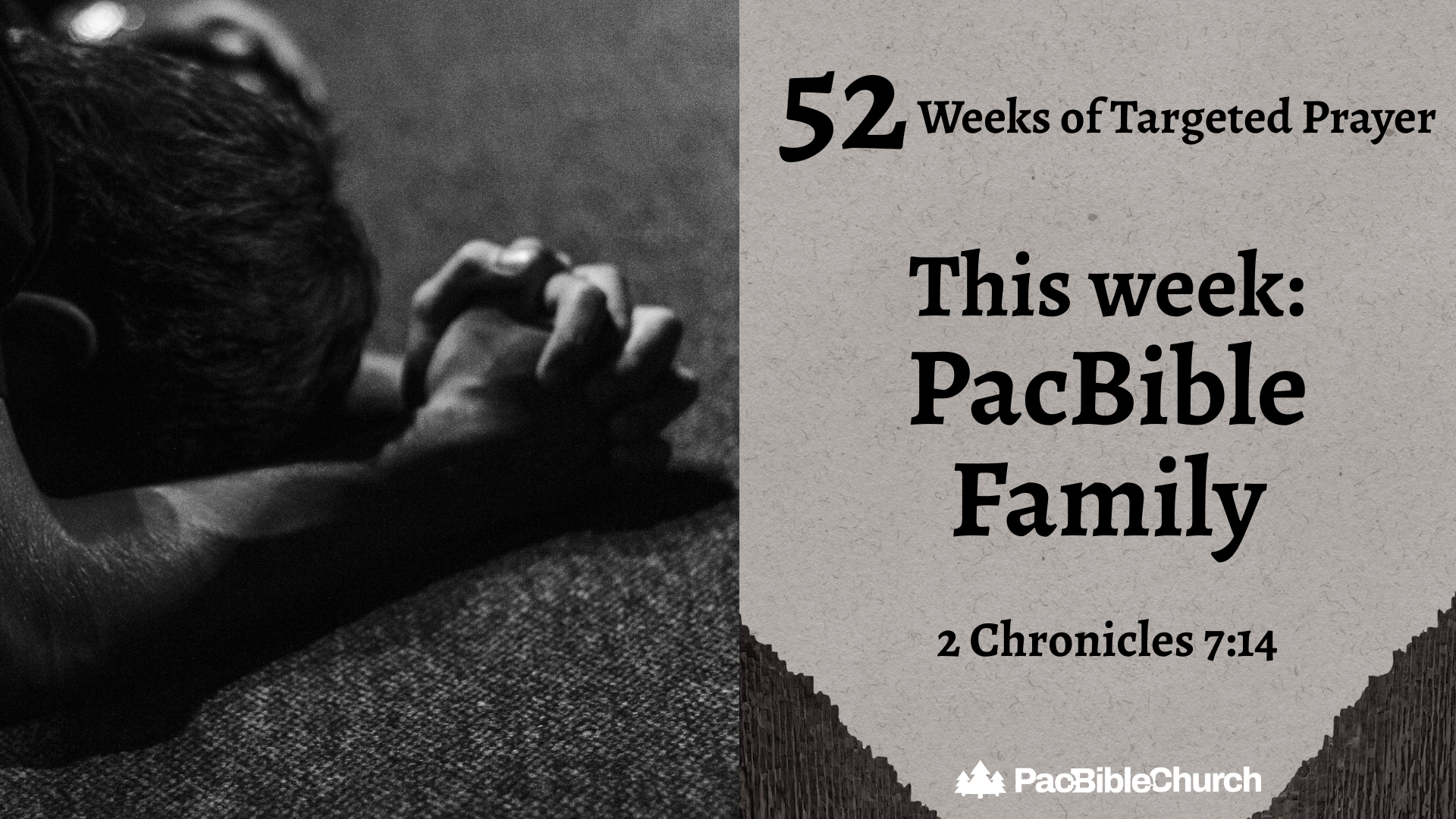 This week we are focusing on prayer for our church family. Remember to lift up your church family and Pastor Vern and Kaaryn this week in prayer!
